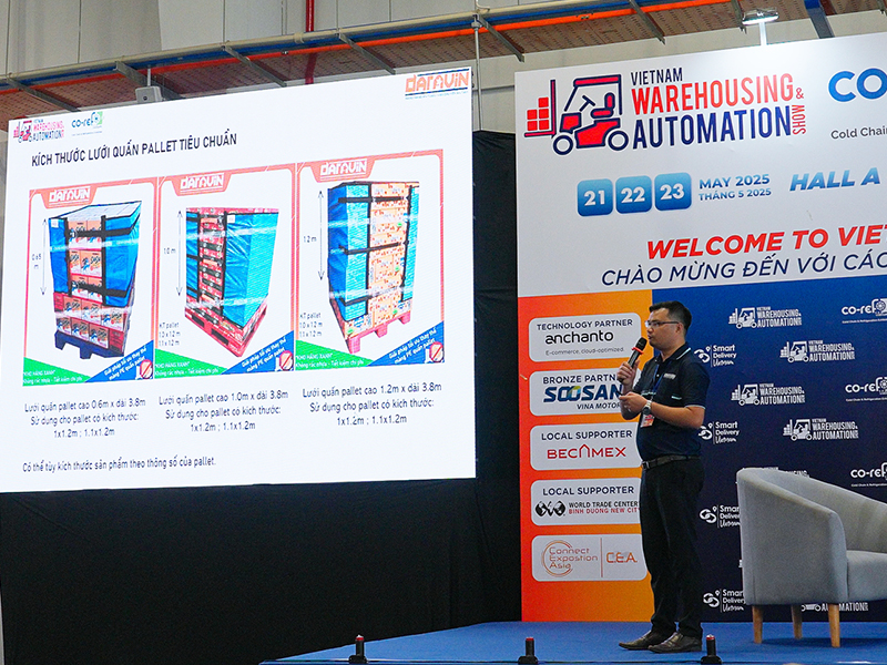 CEO công ty Minh Khôi đang chia sẻ về giải pháp KHO HÀNG XANH TẠI VWAS 2025