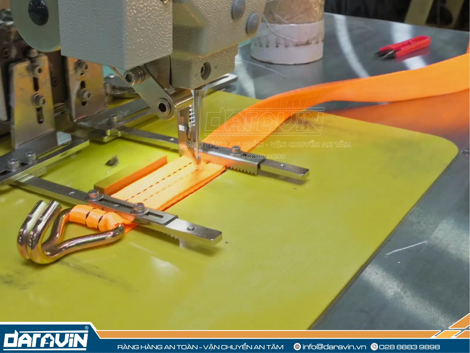 In logo, slogan, thông tin thương hiệu: DARAVIN sử dụng công nghệ in hiện đại, đảm bảo logo, slogan, thông tin thương hiệu được in sắc nét, bền màu, nổi bật trên dây tăng đơ, giúp tăng cường nhận diện thương hiệu và quảng bá hình ảnh doanh nghiệp một cách chuyên nghiệp.