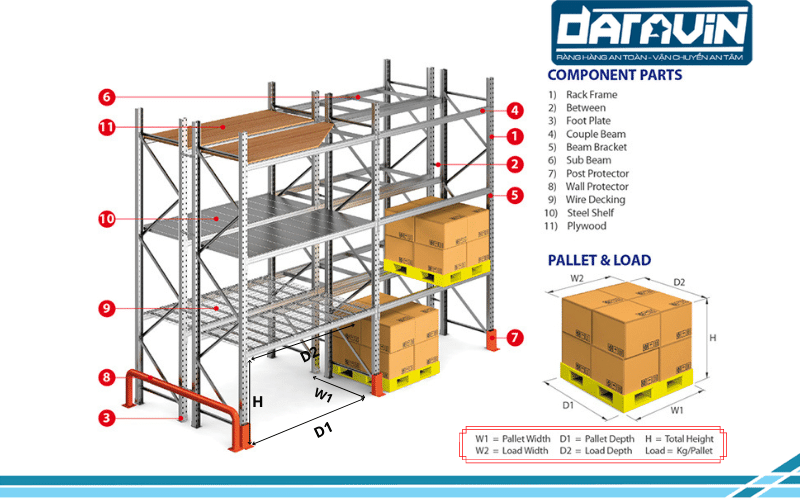 *Lưu ý: Vì là dòng kệ pallet có khả năng chịu tải cao, nên Quý Anh/Chị doanh nghiệp nên cần lưu ý lựa chọn những giải pháp ràng hàng trên pallet an toàn khi dùng xe nâng đưa lên tầng cao. DARAVIN gợi ý một số giải pháp ràng hàng trên pallet an toàn giá rẻ bên dưới.