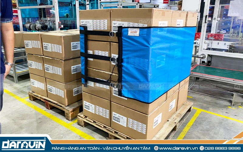 Giải pháp này đặc biệt phù hợp với môi trường kho hàng tại Hải Phòng, nơi yêu cầu tốc độ xuất nhập hàng nhanh và liên tục. Việc sử dụng lưới giúp rút ngắn thời gian thao tác, không cần quấn nhiều vòng như màng PE.