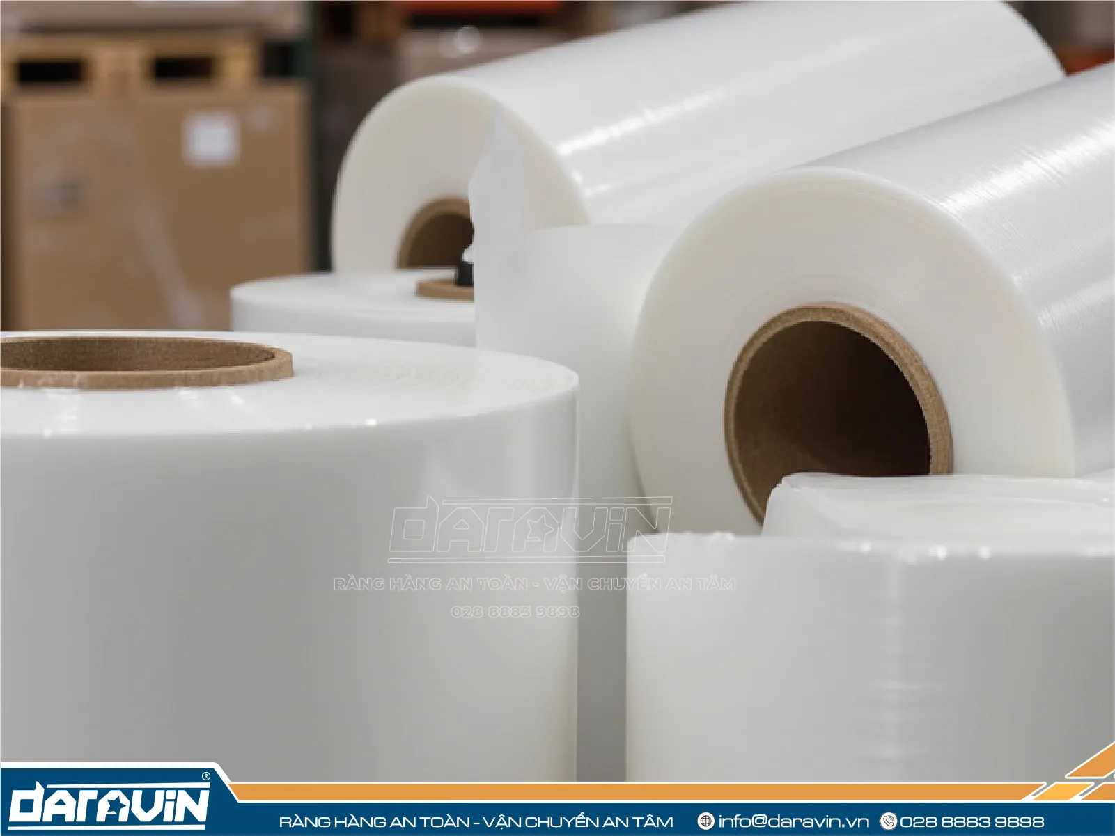 DARAVIN tự hào là nhà cung cấp màng pe quấn pallet khổ 50cm uy tín hàng đầu tại TPHCM. Chúng tôi cam kết mang đến cho khách hàng những sản phẩm chất lượng cao với giá cả cạnh tranh nhất.