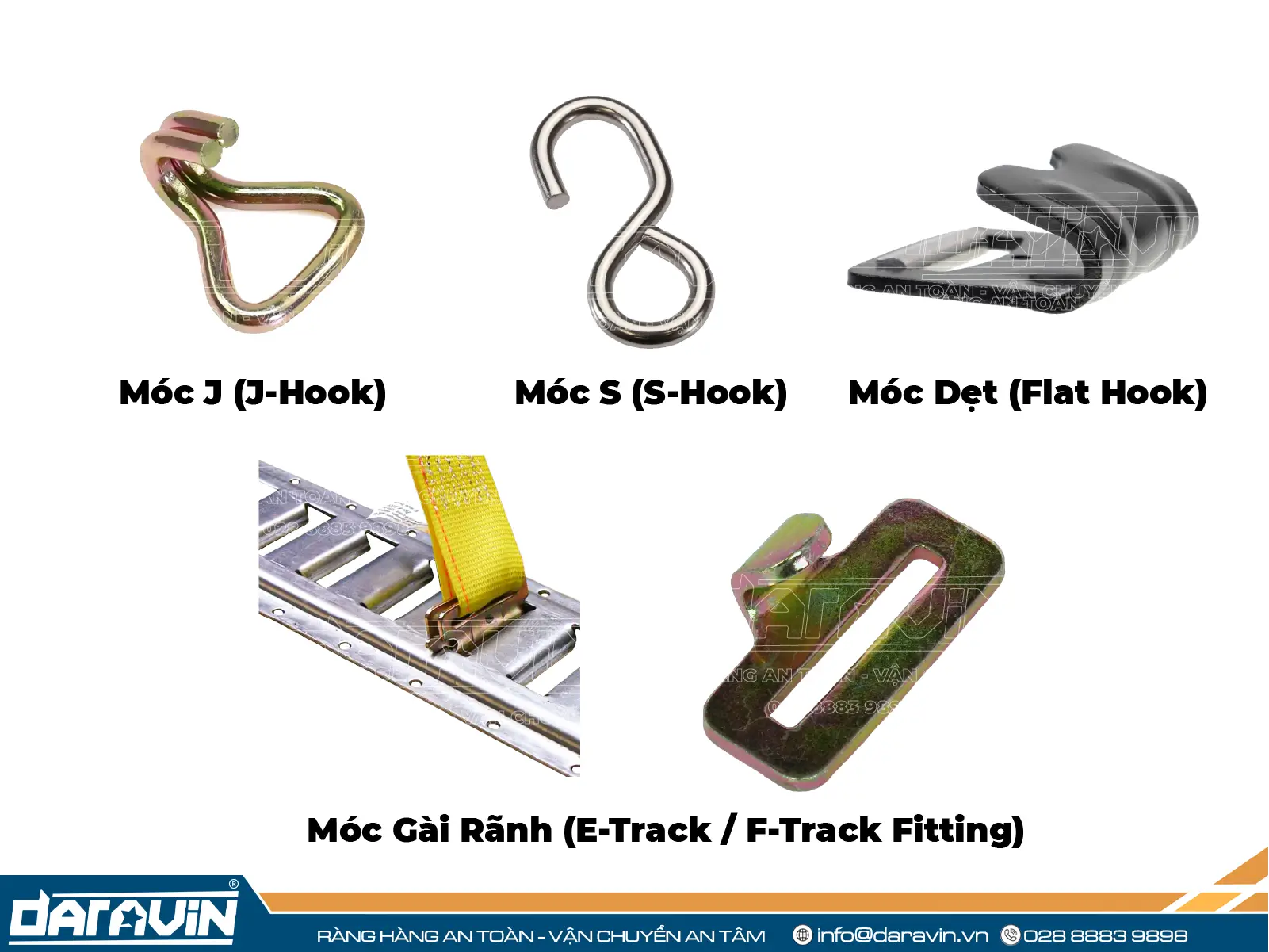 Hình ảnh các loại móc hay sử dụng của dây chằng hàng