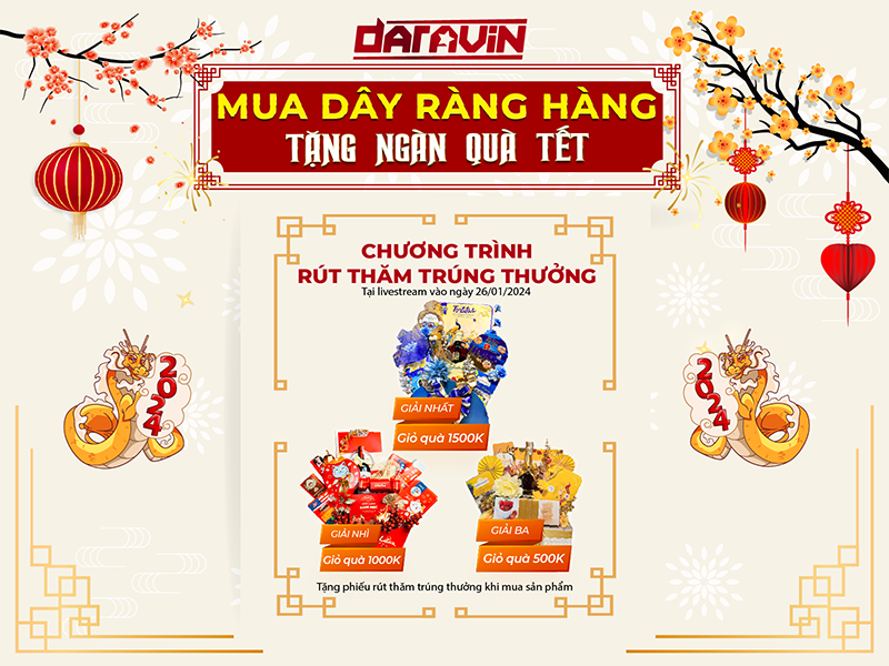 Chần chừ gì nữa, hãy cùng Daravin trải nghiệm không khí Tết ấm áp với chương trình "Mua Dây Ràng Hàng, Nhận Ngàn Quà Tết" Đặt hàng ngay để không chỉ sở hữu những sản phẩm chất lượng mà còn có cơ hội rinh ngay hàng ngàn quà tết giá trị.