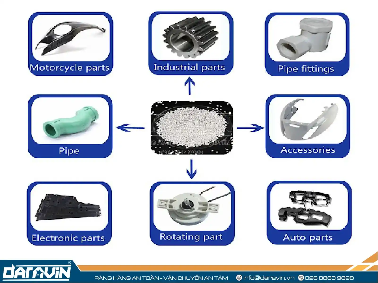 - Chống ăn mòn hóa học: Nhựa này có khả năng kháng lại nhiều loại hóa chất, giúp kéo dài tuổi thọ sản phẩm khi sử dụng trong môi trường hóa chất.