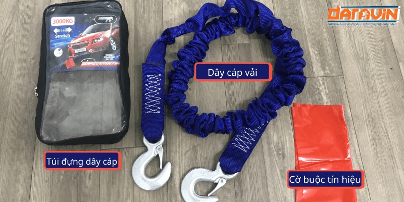 Bộ phụ kiện cáp vải kéo cứu hộ ô tô tải trọng 3 tấn của Daravin