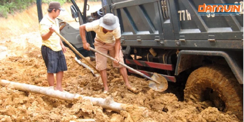 Đây được xem là cách phổ biến nhất nhưng đòi hỏi bạn cần một chút sức lực để thực hiện việc việc đào xới những vùng đất bùn lầy xung quanh lốp xe bạn để phần đất cứng và rắn hơn bên dưới tiếp xúc với bề mặt lốp xe