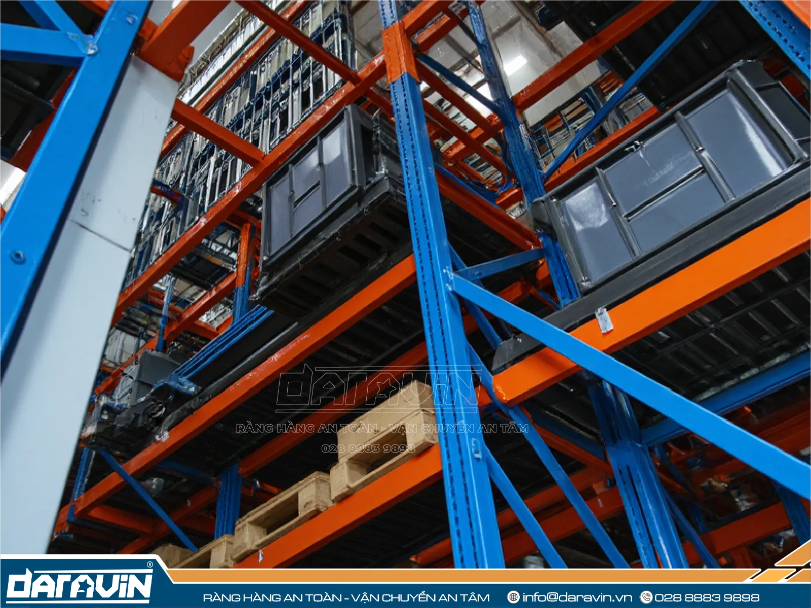 Thích hợp cho việc lưu trữ nguyên liệu, bán thành phẩm và thành phẩm với số lượng lớn và ít chủng loại, giúp tối ưu hóa quy trình sản xuất và quản lý kho.