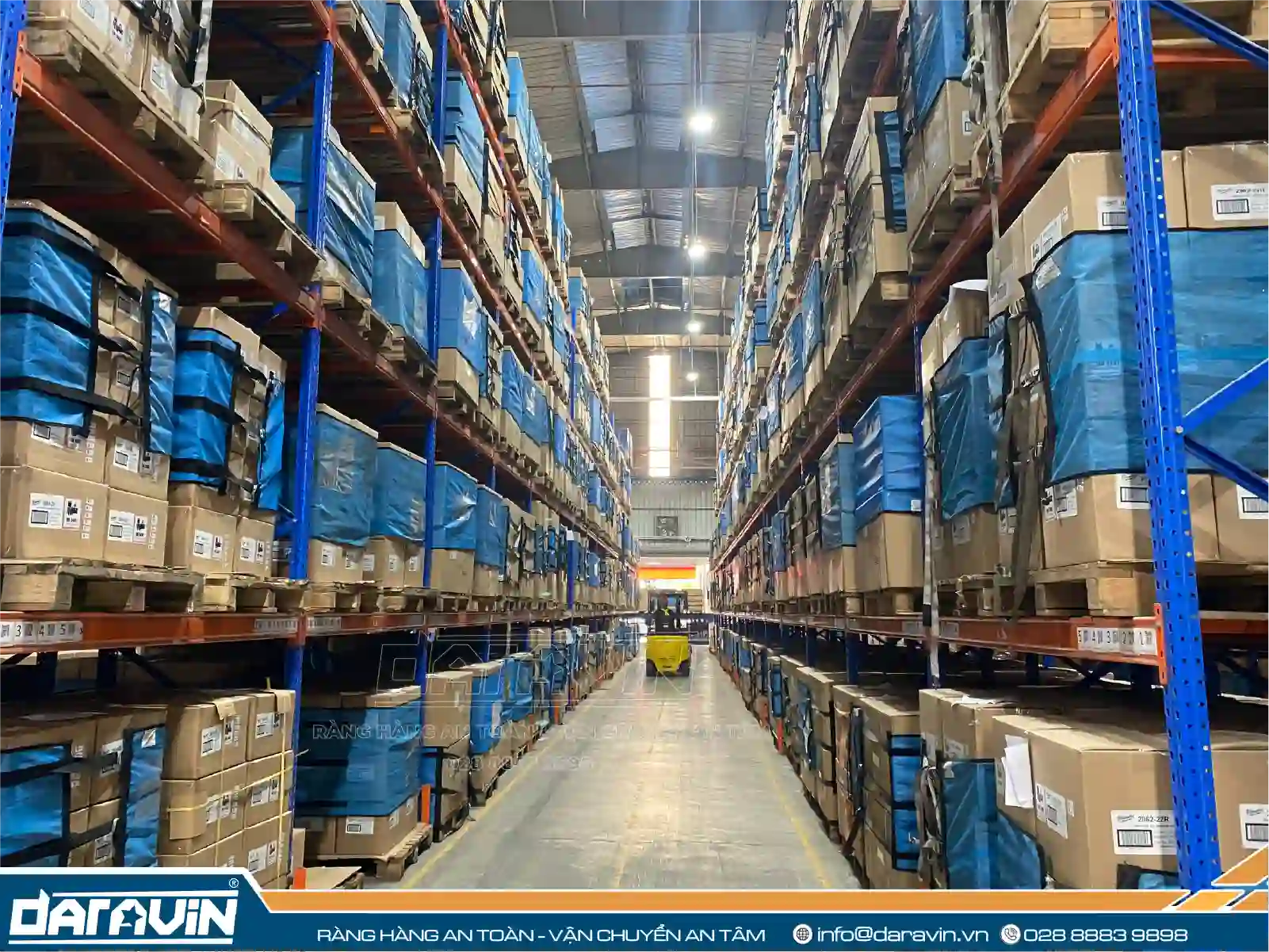 Mật độ lưu trữ rất cao, xe nâng đi sâu vào bên trong. |