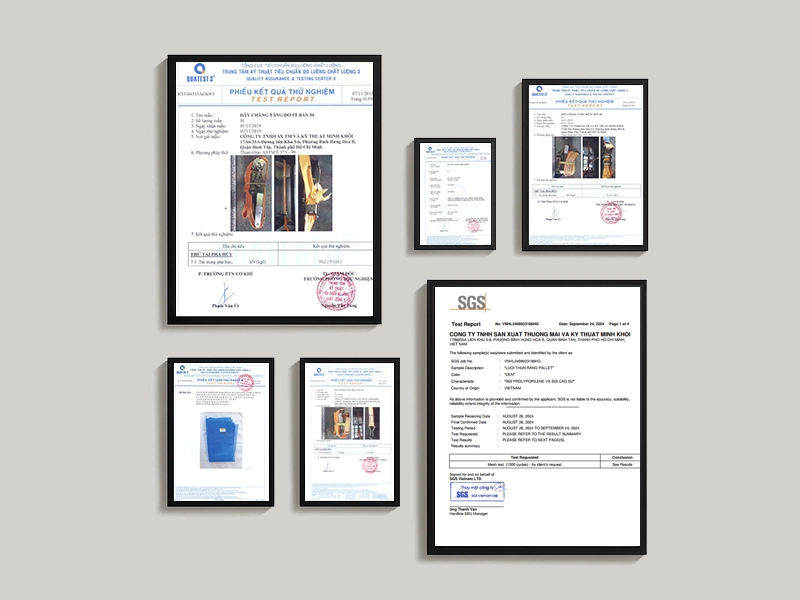 Chất lượng là giá trị cốt lõi tạo nên uy tín của DARAVIN. Chúng tôi duy trì hệ thống quản lý chất lượng nghiêm ngặt, tuân thủ tiêu chuẩn an toàn quốc tế trong sản xuất dây cẩu hàng, dây tăng đơ, lưới chắn container và các vật tư bảo vệ hàng hóa. DARAVIN tự hào đạt các chứng nhận về chất lượng sản phẩm và hệ thống quản lý, khẳng định trách nhiệm với khách hàng và định hướng phát triển bền vững.