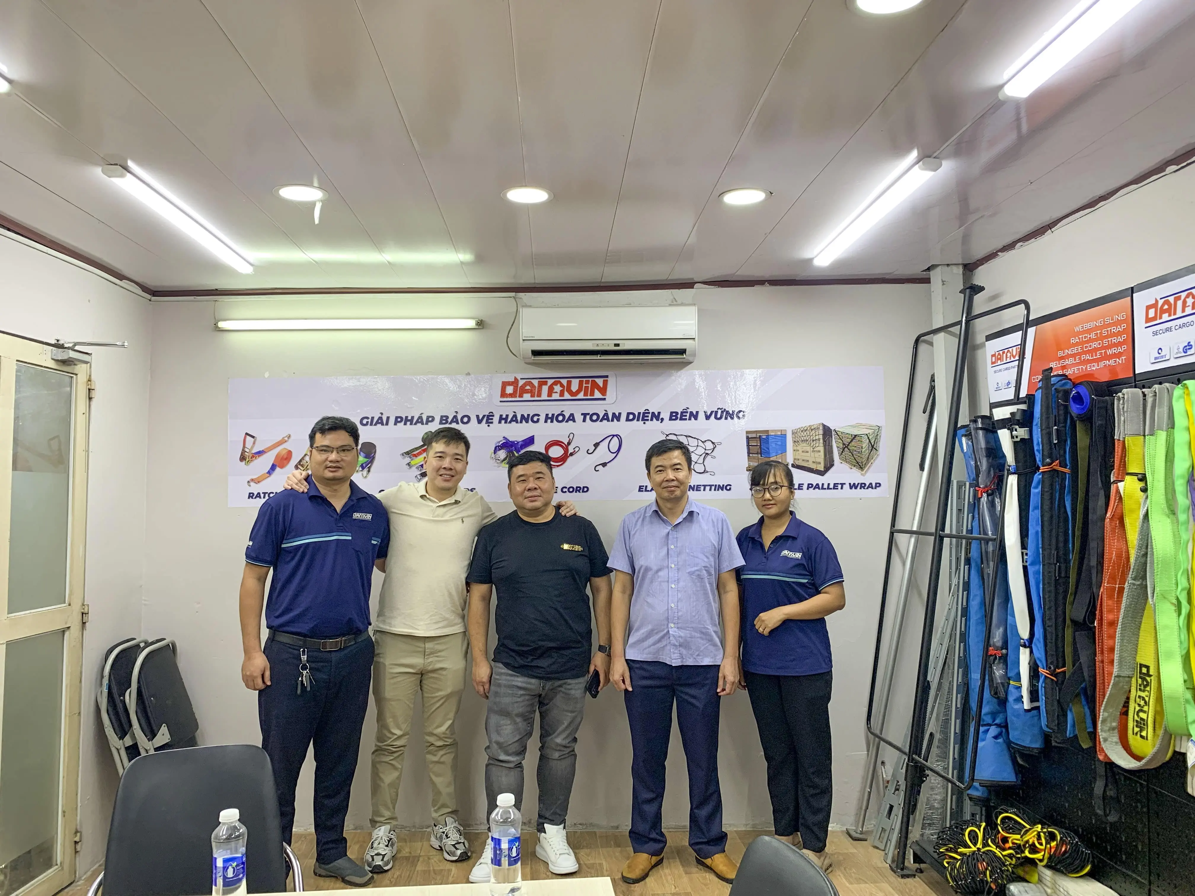 Các sản phẩm chủ lực của DARAVIN bao gồm dây tăng đơ chằng hàng, dây chằng khóa cam, lưới quấn pallet, dây thun dệt tròn, dây cáp vải cẩu hàng, vật tư đóng gói và các phụ kiện bảo vệ hàng hóa trên container. Mỗi sản phẩm được nghiên cứu, thiết kế và kiểm định kỹ lưỡng, phù hợp với nhiều ngành hàng từ logistic, kho bãi đến sản xuất công nghiệp và xuất nhập khẩu.