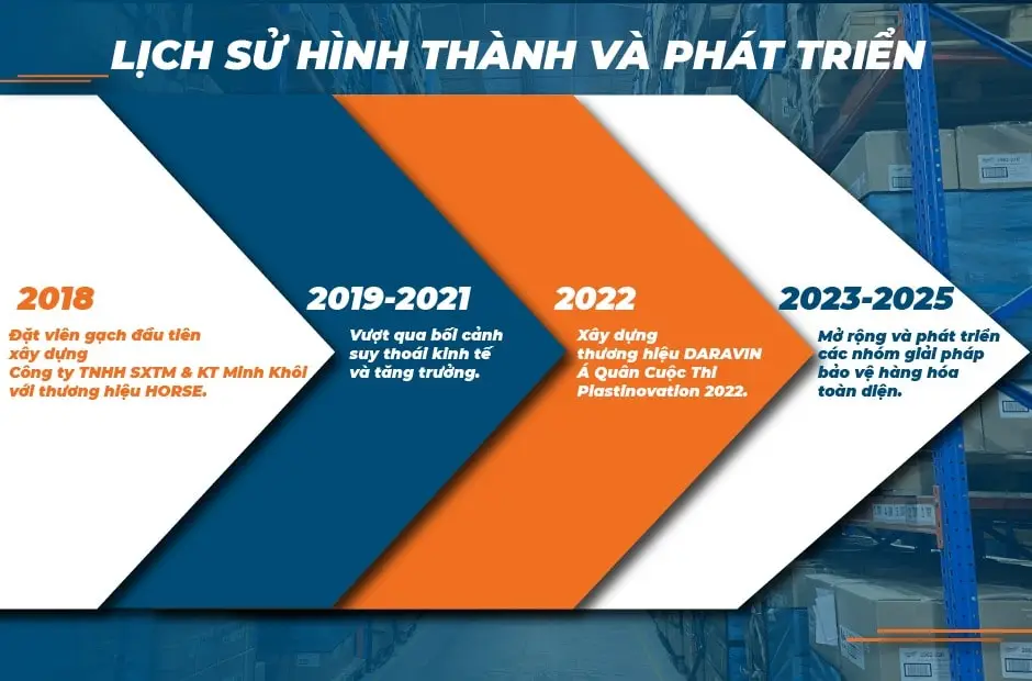 - 2018: Thành lập Công ty TNHH SXTM & KT Minh Khôi với thương hiệu HORSE, đặt nền móng đầu tiên cho lĩnh vực giải pháp bảo vệ hàng hóa.