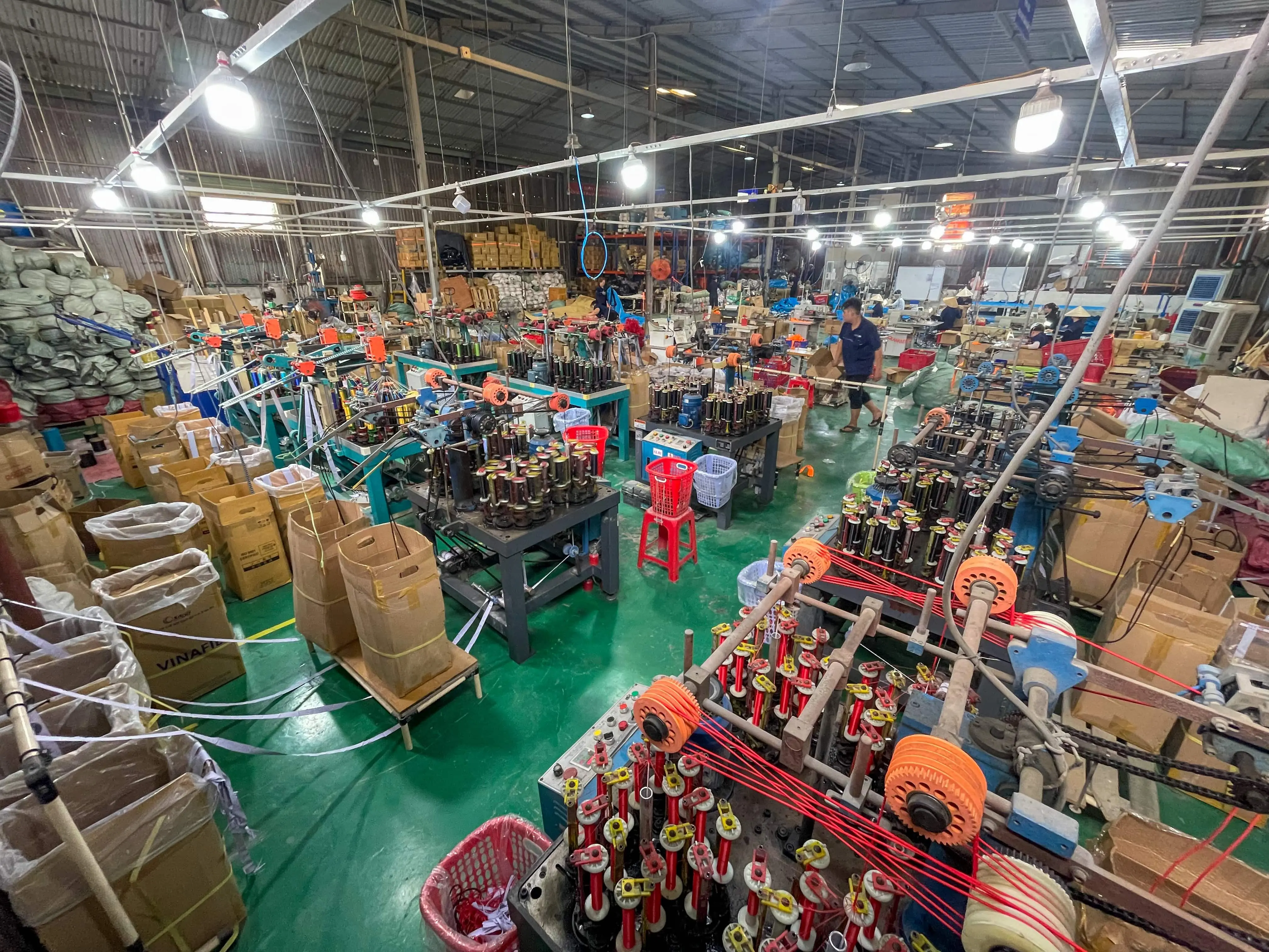 DARAVIN sở hữu nhà xưởng sản xuất rộng hơn 2.500m², được đầu tư hệ thống máy móc hiện đại bao gồm dây chuyền dệt dây thun, sản xuất dây tăng đơ, sản xuất lưới quấn pallet, gia công lưới chắn container và thiết bị nâng hạ đạt chuẩn quốc tế. Năng lực sản xuất lớn giúp chúng tôi đáp ứng các đơn hàng số lượng cao, đa dạng mẫu mã, đảm bảo tiến độ và chất lượng đồng bộ.