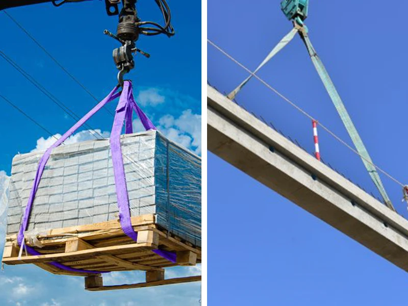- Dây cáp vải cẩu hàng (webbing sling, round sling) với nhiều tải trọng, chiều dài và bản rộng, phù hợp cẩu kiện hàng máy móc, thép, gỗ, container