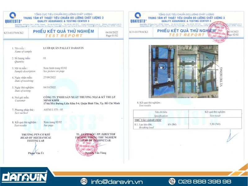 Để mua lưới quấn pallet tái sử dụng có 2 nấc xiết chất lượng, giá thành tốt khách hàng hãy đến với DARAVIN. Công ty trực tiếp sản xuất và phân phối lưới quấn pallet ra thị trường. Các sản phẩm của đơn vị đều được sản xuất trên dây chuyền công nghệ hiện đại, tiên tiến nhất đảm bảo chất lượng sản phẩm đáp ứng mọi nhu cầu công việc. Ngoài ra, các sản phẩm đều được kiểm tra đạt các tiêu chuẩn chất lượng tại Trung tâm kiểm định uy tín QUATEST 3.