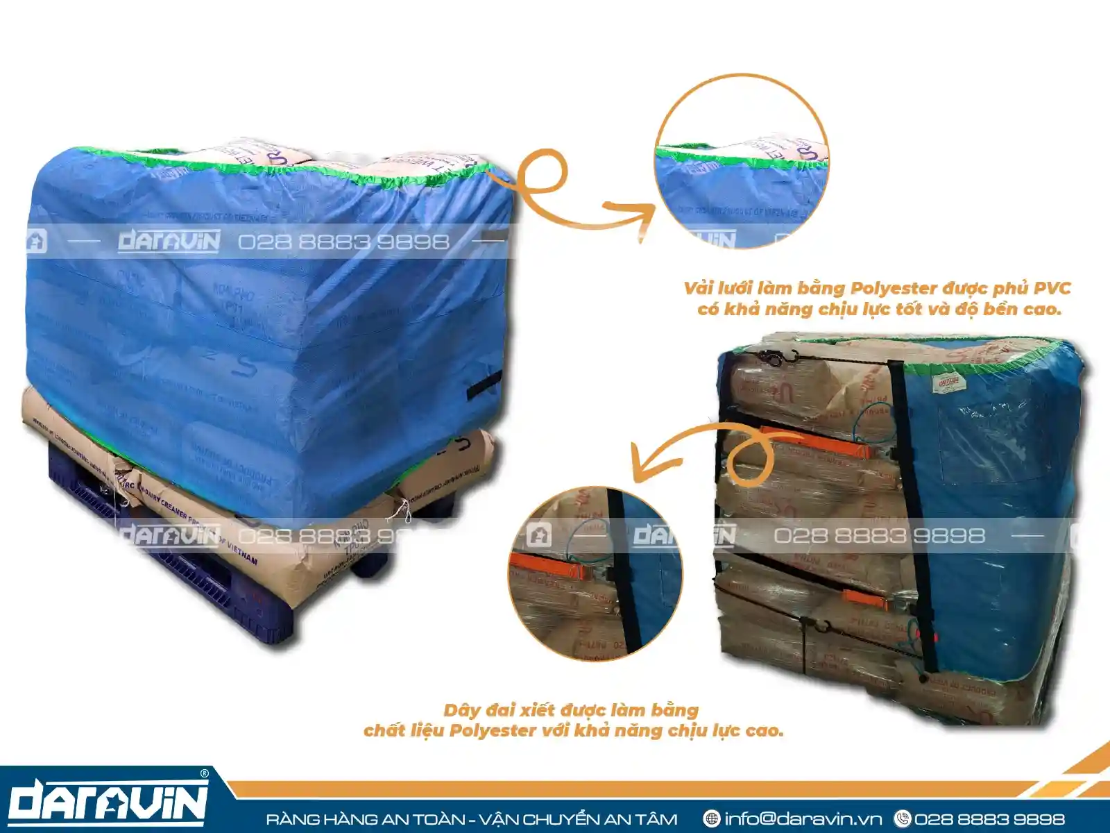Sử dụng lưới quấn pallet tái sử dụng có viền thun đem lại nhiều lợi ích cho các doanh nghiệp cần chằng hàng hóa. Vì vậy, khách hàng hãy đến ngay với DARAVIN để được tư vấn, hỗ trợ một cách tận tâm, chi tiết nhất để chọn mua được lưới quấn cho phù hợp.