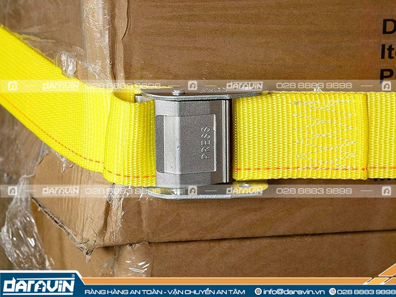 Đối với khu vực kho bãi thì việc sử dụng dây chằng khóa cam để giữ chặt các pallet, các hộp hoặc bất cứ mẫu hàng hóa nào khác.