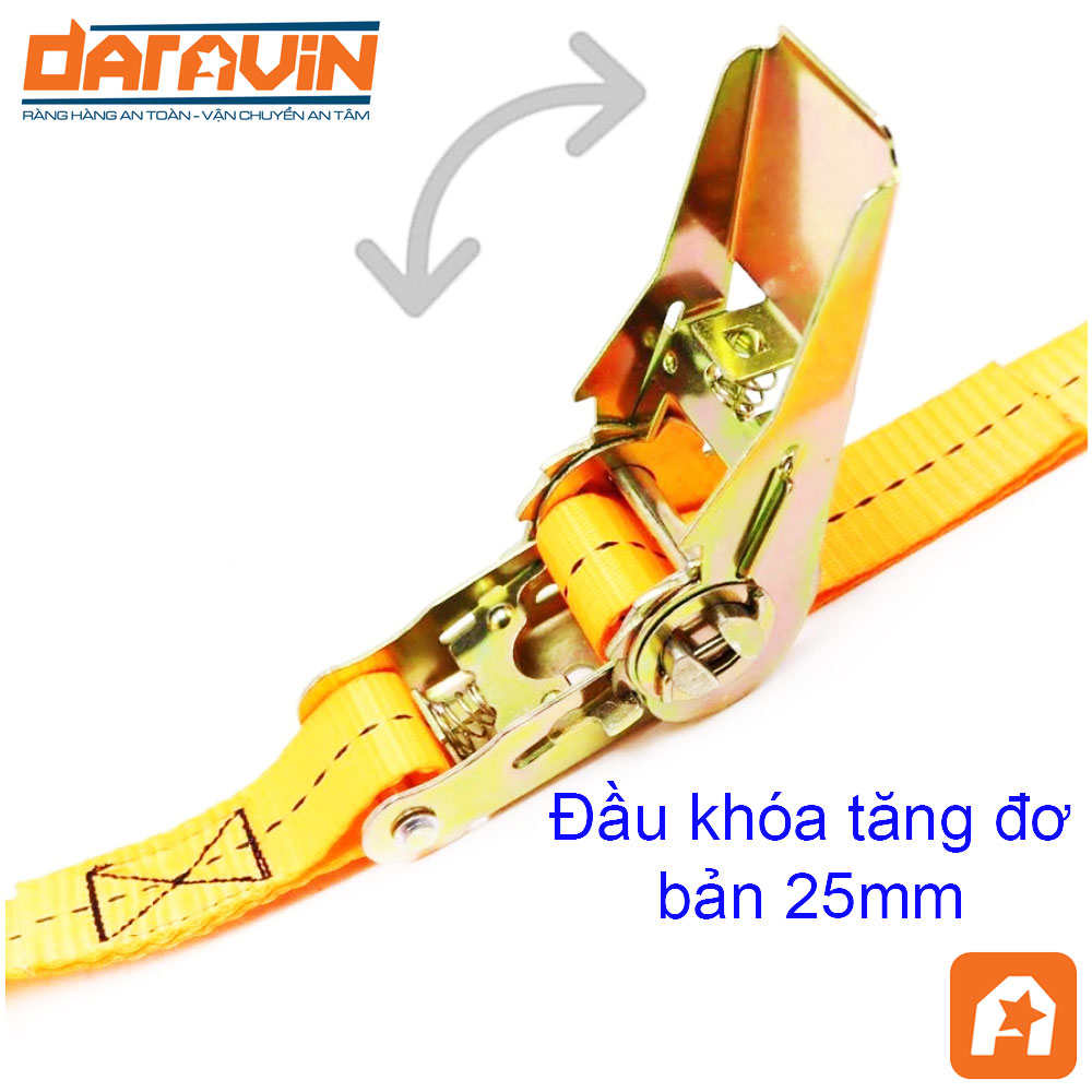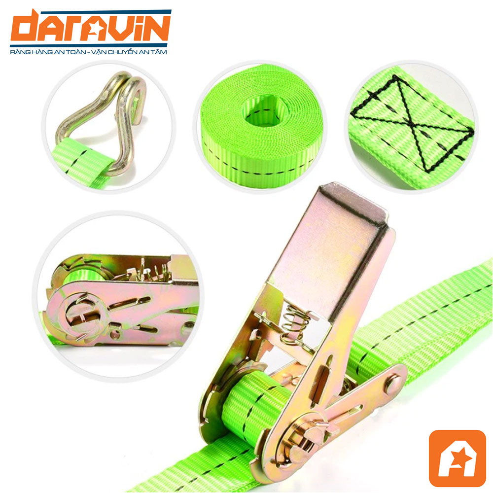 - Chịu tải tốt cho hàng hóa cỡ trung: Dây bản 25mm nhưng chịu lực đến 800kg, phù hợp để cố định các kiện hàng tải nhẹ đến trung bình khi vận chuyển trên xe bán tải, xe tải nhỏ hoặc cố định trên pallet.