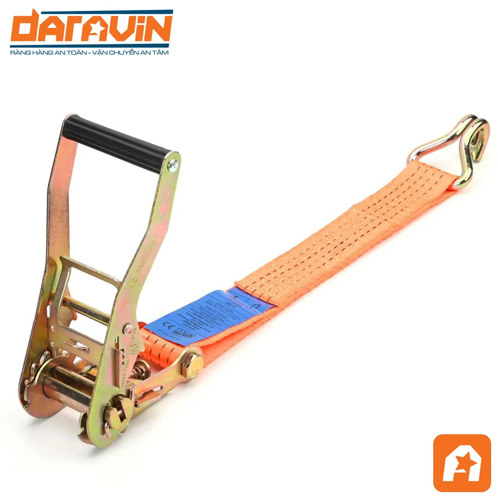 - Khả năng chịu tải mạnh mẽ 5 tấn: Dây tăng đơ bản 50mm của DARAVIN chịu lực tốt, phù hợp để cố định những kiện hàng nặng và cồng kềnh trong quá trình vận chuyển hoặc lưu kho.