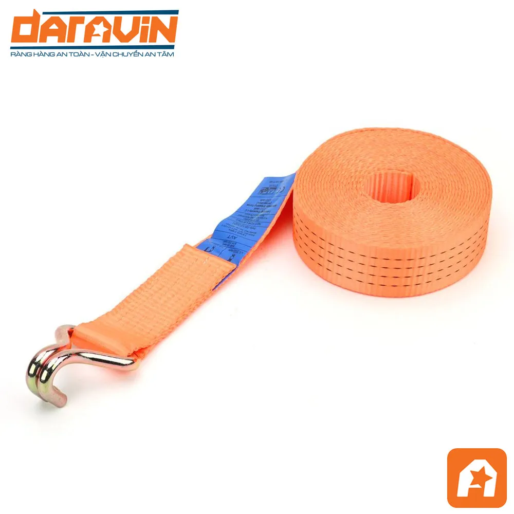 - Cấu tạo chắc chắn với dây Polyester chịu lực tốt và móc J thép mạ kẽm giúp giữ hàng hóa ổn định, giảm rủi ro trượt hoặc bung trong suốt quá trình vận chuyển.