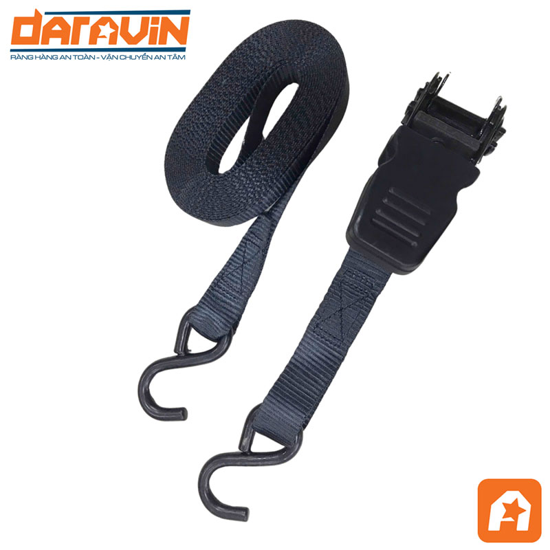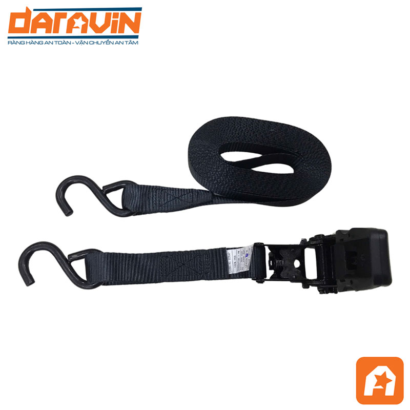 - Tải trọng làm việc 650kg cùng bản dây 25mm giúp chằng buộc hàng nhẹ và vừa an toàn, ổn định trong quá trình vận chuyển hàng ngày.
