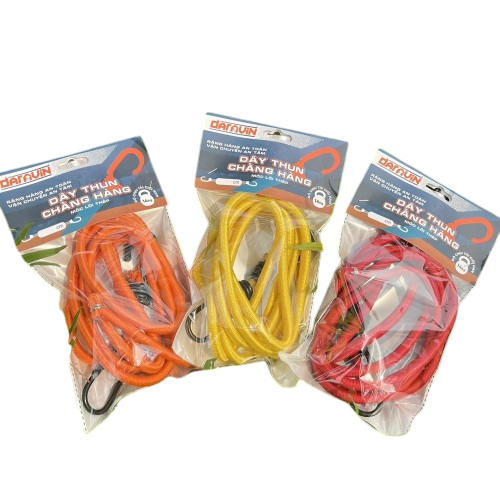 - Thao tác sử dụng đơn giản: Nhờ thiết kế móc thép phủ nhựa ở hai đầu, dây thun cho phép cố định vật phẩm nhanh chóng mà không cần dụng cụ hỗ trợ, giúp tiết kiệm thời gian và công sức trong các công việc chằng buộc.