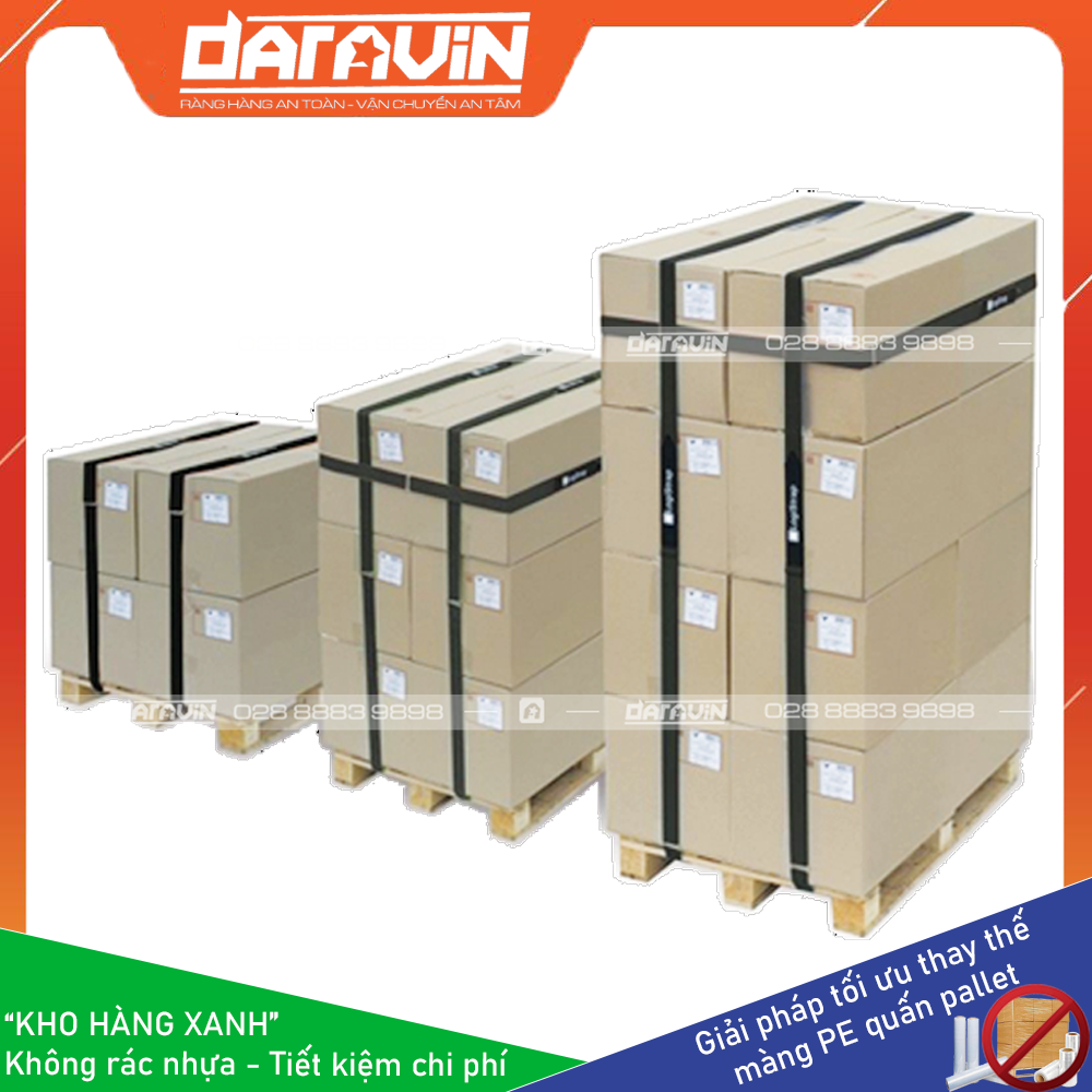 Với hơn 5 năm kinh nghiệm tư vấn thiết kế giải pháp thay thế màng PE quấn pallet, DARAVIN khẳng định rằng các sản phẩm dây ràng pallet khóa gai dán tái sử dụng của chúng tôi luôn đem đến những lợi ích to lớn cho khách hàng: Tái sử dụng nhiều lần giúp tiết kiệm chi phí, cắt giảm rác nhựa giúp bảo vệ môi trường, thao tác nhanh chóng giúp tăng hiệu quả công việc.