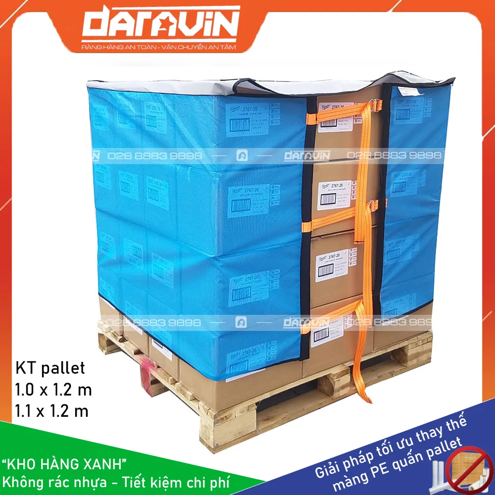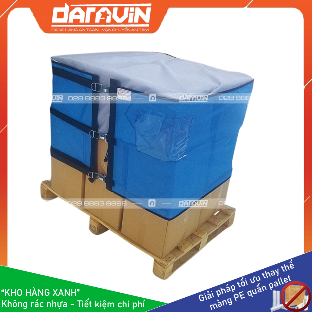 Với hơn 5 năm kinh nghiệm tư vấn thiết kế giải pháp thay thế màng PE quấn pallet, DARAVIN khẳng định rằng các sản phẩm lưới quấn pallet tái sử dụng có vải trùm của chúng tôi luôn đem đến những lợi ích to lớn cho khách hàng: Tái sử dụng nhiều lần giúp tiết kiệm chi phí, cắt giảm rác nhựa giúp bảo vệ môi trường, thao tác nhanh chóng giúp tăng hiệu quả công việc.