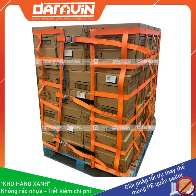 Trong môi trường kinh doanh hiện nay, xu hướng xanh hóa và tối ưu chi phí luôn là vấn đề quan trọng trong việc phát triển doanh nghiệp.Ở các kho hàng hiện nay, màng PE sử dụng để quấn bảo vệ hàng hóa trên các pallet được gặp thất thấy thường xuyến, tuy nhiên màng PE chỉ sử dụng được 1 lần, dẫn đến lãng phí và xả rác nhựa ra môi trường. Lưới quấn pallet tái sử dụng dây bẹ là một giải pháp tiên tiến giúp thay thế màng PE quấn pallet truyền thống, cắt giảm chi phí tiêu hao và giúp doanh nghiệp cắt giảm lượng rác thải nhựa bảo vệ hành tinh của chúng ta thêm xanh.