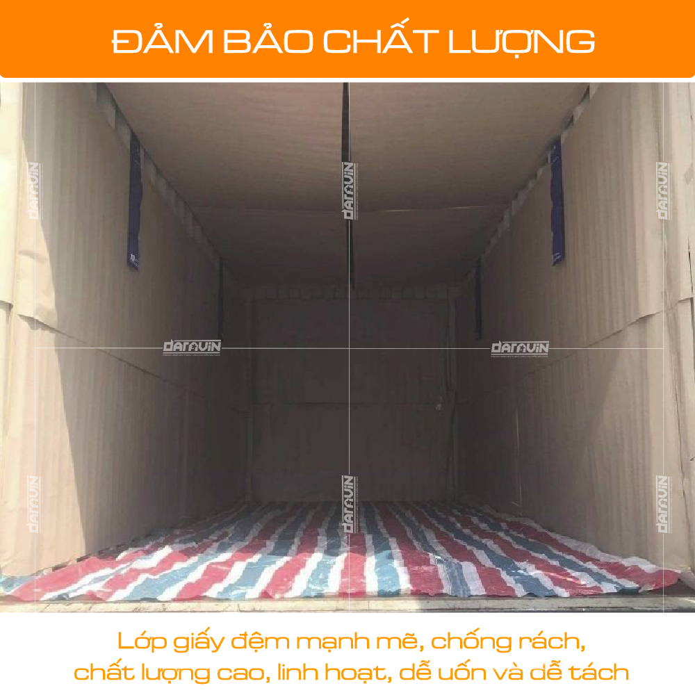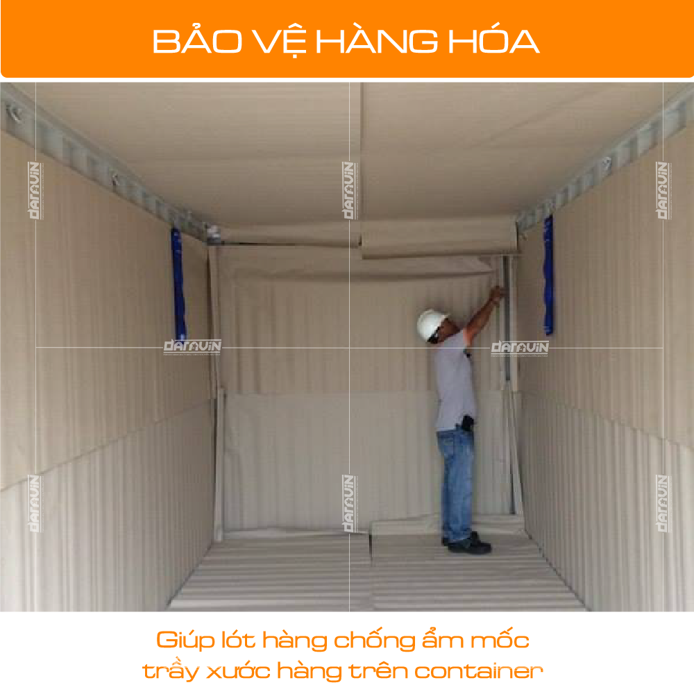Daravin cung cấp các giải pháp nhằm ngăn chặn tình trạng trên cho Quý khách: Giấy dán container, hay còn gọi là giấy lót container, được cấu tạo bởi các lớp carton hoặc giấy kraft. Tác dụng chính là giúp sản phẩm trong container không bị ẩm mốc, hư hại. Mặt khác tránh được phần nào tình trạng đổ bể trên container.